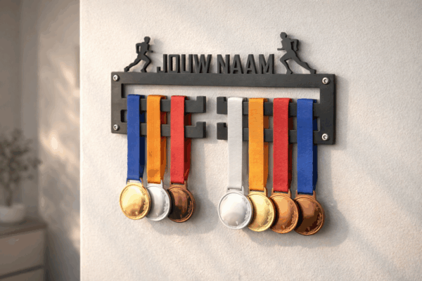 Deze medaillehouder is niet alleen praktisch, maar ook een echte eyecatcher aan de muur. Ideaal voor fanatieke marathonlopers, sportliefhebbers of als persoonlijk cadeau voor iemand die net een bijzondere prestatie heeft geleverd.